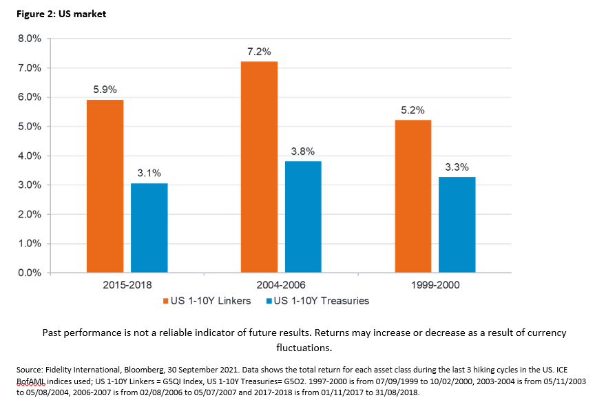 - Banki centralne rynków rozwiniętych coraz głośniej opowiadają się za normalizacją ultra łagodnej polityki monetarnej wdrożonej po wybuchu pandemii. Może to być zatem dobry moment, aby dołożyć do swojego portfela obligacje indeksowane inflacją. Historia pokazuje, że podczas cykli podwyżek tzw. linkery z terminem zapadalności w przedziale 1-10 lat mają tendencję do osiągania lepszych wyników niż ich odpowiedniki o stałym dochodzie – wskazuje Tim Foster, zarządzający funduszem Fidelity Global Inflation Linked Bond.