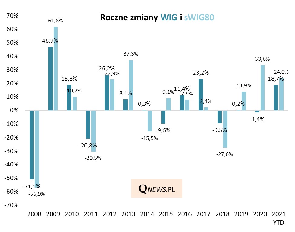 Mijający rok zdecydowanie należał do rynków akcji, jeśli chodzi o wyniki inwestycyjne. Rodzimy WIG w chwili pisania tego artykułu jest mimo jesiennej korekty ciągle prawie 19 proc. na plusie od początku roku. Po mizernym dla krajowego indeksu okresie to rezultat najlepszy od czterech lat. Z kolei indeks małych spółek sWIG80 kończy już trzeci rok na sporym plusie.