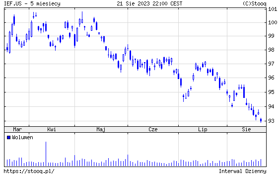 ETF iShares 7-10 Y Treasury Bond inwestujący w obligacje skarbowe o terminach zapadalności pomiędzy 7 i 10 lat od pierwszej dekady maja stracił ponad 7%.