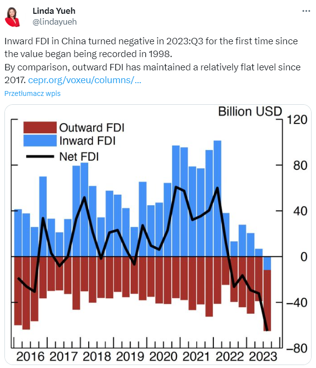 … ale również spadek inwestycji bezpośrednich (FDI).