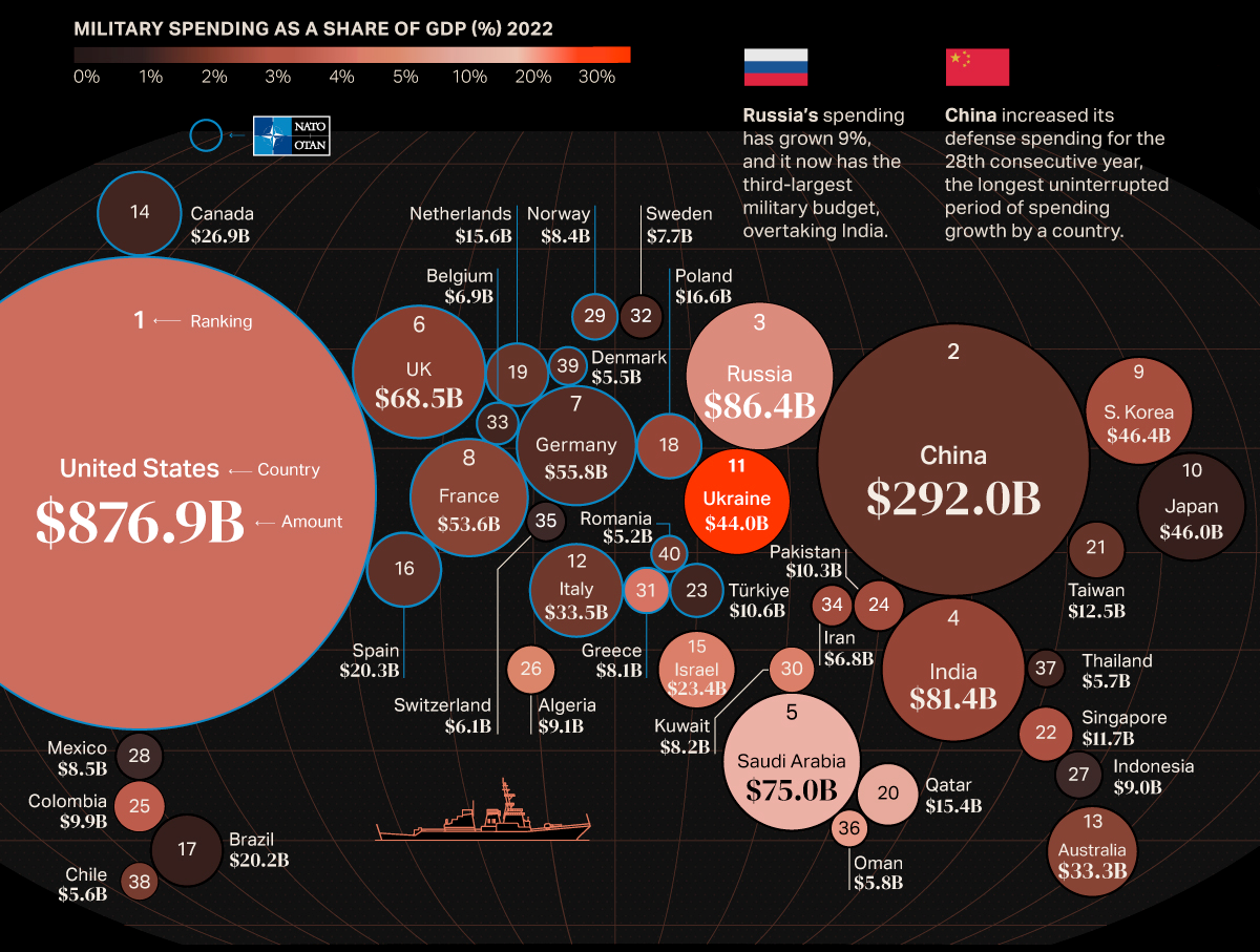 Wydatki na zbrojenia w Chinach sprawiają, że jest to drugi pod tym względem kraj na świecie, oczywiście za USA.