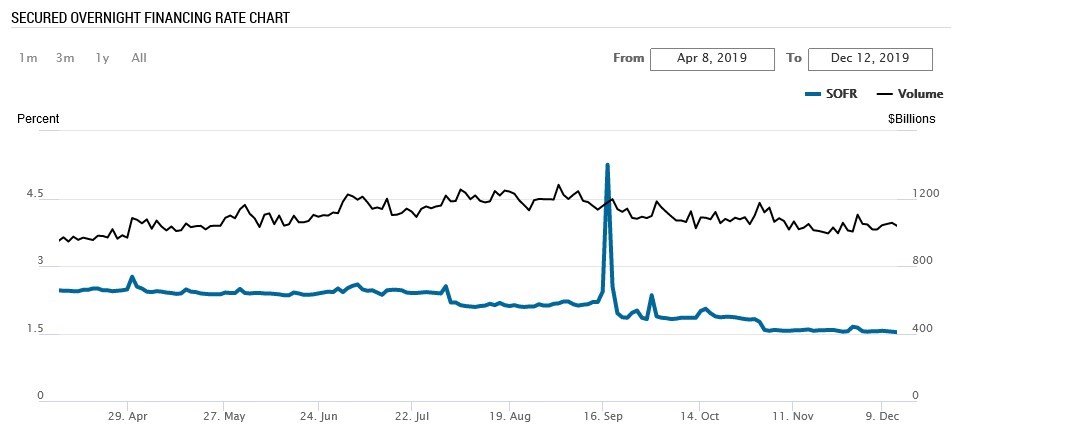 Operacje reverse repo to działania Fed, które pozwalają bankom ulokować nadwyżki kapitału na rachunku Fed. Banki zawierają z Fed transakcje, gdzie kupują obligacje z przyrzeczeniem odkupu po określonej cenie i w określonym terminie. To oznacza, że Fed pozbywał się części obligacji z portfela w ramach QT, ale równocześnie banki miały takie nadwyżki kapitałów, że zawierały krótkoterminowe transakcje z Fed, gdzie kupowały od banku centralnego obligacje. Dzienna wartość tych transakcji rok temu przekraczała 2 biliony dolarów. Od tego czasu Fed zredukował sumę bilansową o 1,6 biliona dolarów, a banki ograniczyły transakcje reverse repo do 400 miliardów dolarów dziennie. Można przyjąć, że jeżeli Fed nadal będzie prowadził QT, to wcześniej czy później taki dzień jak 16 września 2019 się powtórzy.
