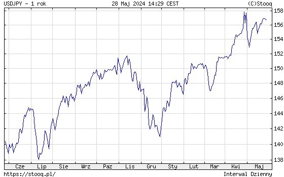 W ciągu roku kurs dolara poszedł w górę z poziomu 140 jenów do 160 jenów. To zmusiło Bank Japonii do zmiany nastawienia i obecnie rynek oczekuje serii podwyżek stóp. Ciekawe, jak impuls inflacyjny wywołany osłabieniem jena wpłynie na inflację?