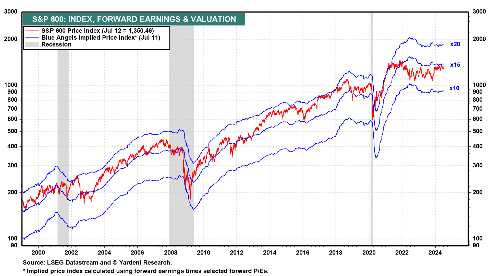 Zwłaszcza, że różnica w wycenach największych spółek i spółek z S&P 600 jest duża. Dla indeksu S&P 500 wskaźnik P/E na prognozowanych zyskach przekracza obecnie 20.