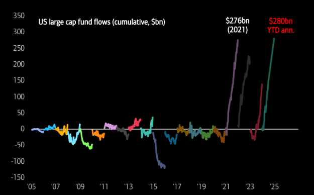 Napływy środków do funduszy dużych spółek w tym roku biją wszelkie rekordy. W pół roku został pokonany rekord z całego 2021 roku.