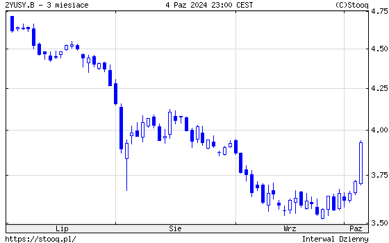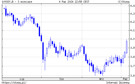 Za spadkiem cen w tym okresie stoi wzrost rentowności. 10-letnie obligacje trzy tygodnie temu miały rentowności 3,6%, a w ostatni piątek zbliżyły się do poziomu 4%.