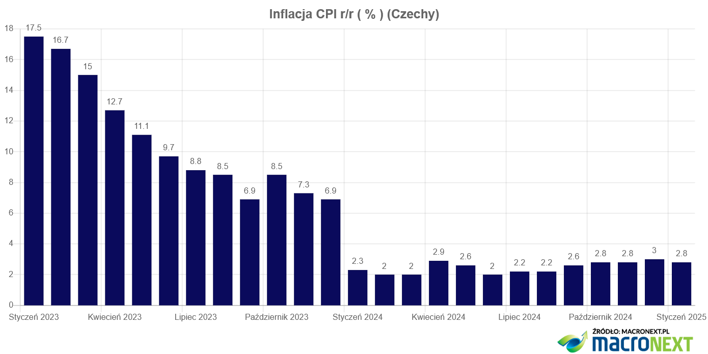 W Czechach inflacja podniosła się z 2 do 3%, a ostatni odczyt to spadek do poziomu 2,8%.