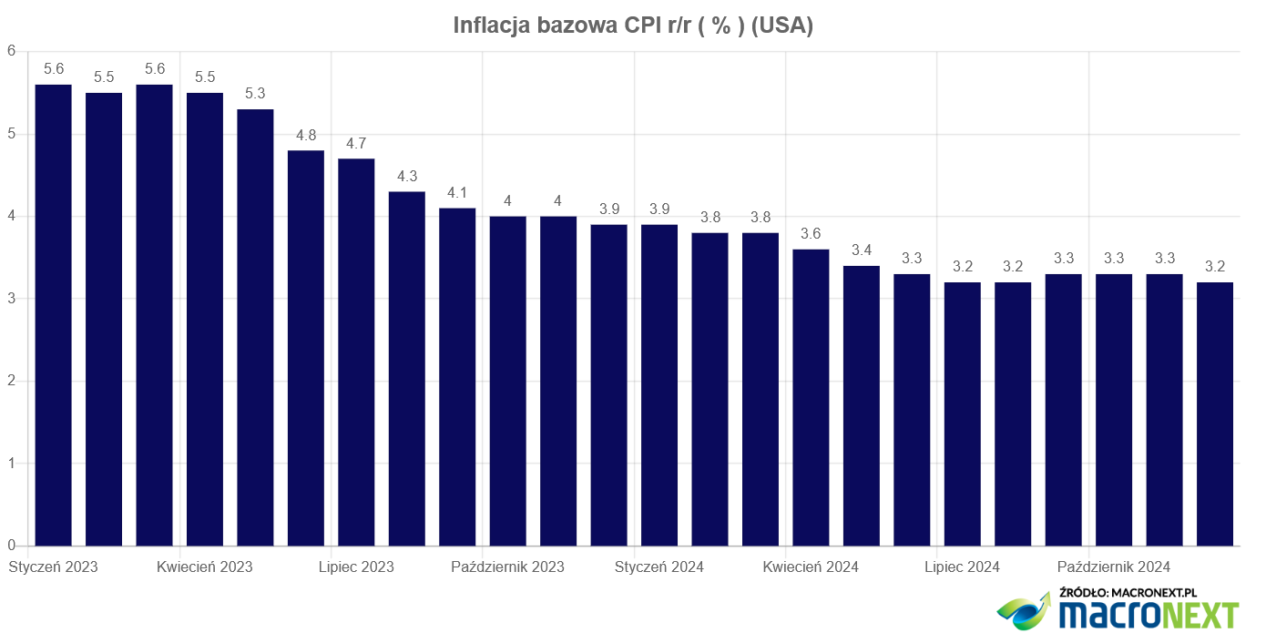 Dobrze kłopoty ze zduszeniem inflacji obrazuje poziom inflacji bazowej w USA. W lipcu ubiegłego roku inflacja ta spadła do 3,2% i obecnie jest na tym samym poziomie.