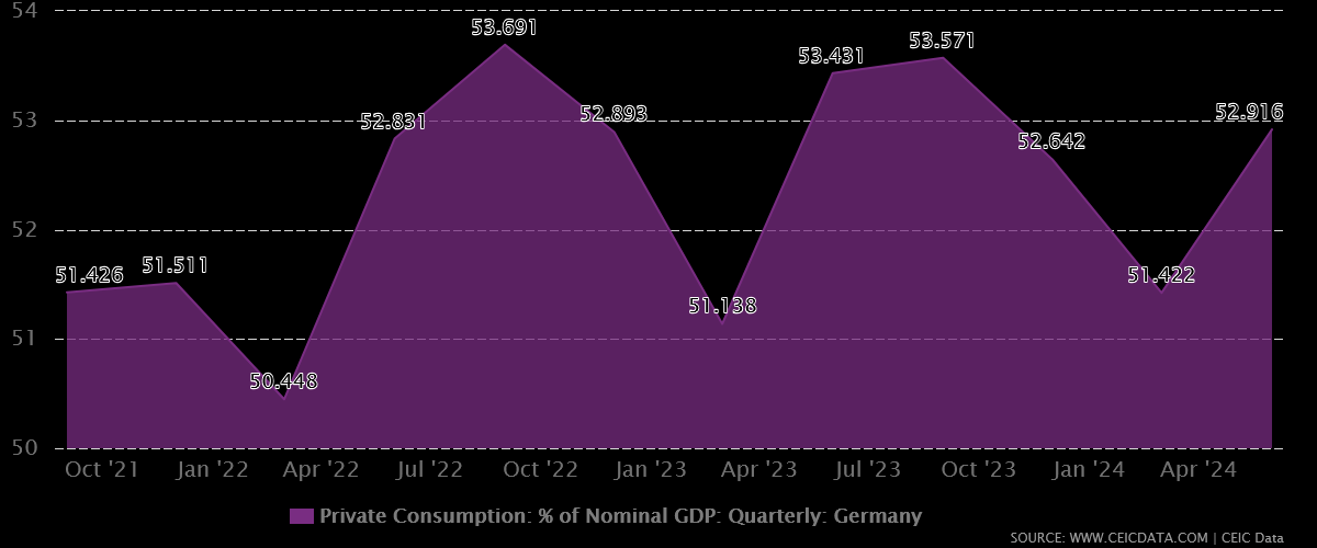 Dla porównania w Niemczech udział konsumpcji w PKB to nieco ponad 52%.