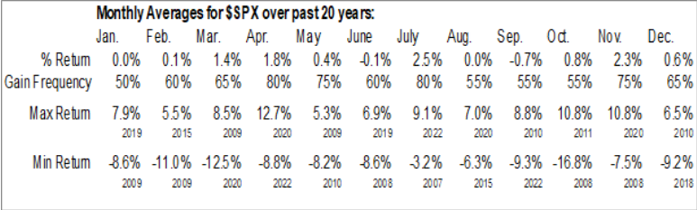 Średnie miesięczne stopy zwrotu dla amerykańskiego rynku akcji za ostatnie 20 lat prezentują się tak (ze strony Equityclock.com).