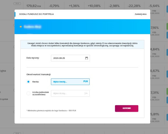 - datę wyceny rozumianą jako dzień, w którym dany fundusz ma znaleźć się w naszym portfelu.