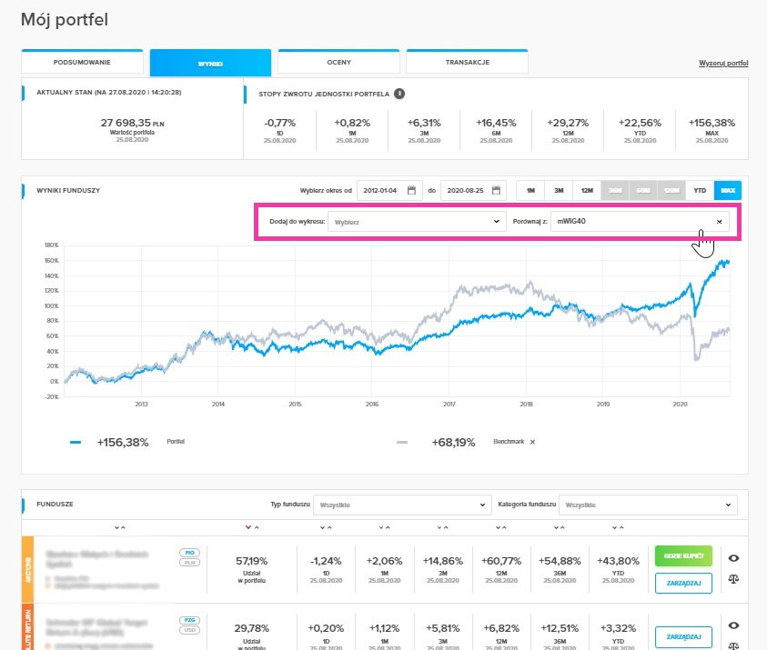 Jedną z najciekawszych funkcjonalności w nowym serwisie analizy.pl jest możliwość stworzenia i zarządzania własnym portfelem funduszy