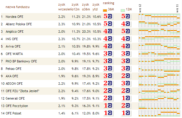 Ranking funduszy emerytalnych (wrzesień 2012)