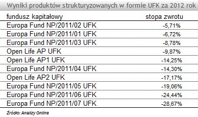 Wycofane ze sprzedaży produkty to 10-letnie struktury z wpłatą jednorazową, oferowane w formie ubezpieczeń na życie i dożycie z ubezpieczeniowym funduszem kapitałowym. Fundusz   Europa Fund NP UFK był uruchamiany wraz z subskrypcją "Kwartalnych Zysków",  Open Life AP UFK na potrzebę "Kwartalnego Profitu" i "Kwartalnego Profitu Plus". Natomiast produkt „Symfonia Zysków” był powiązany z wynikami  Open Life TT UFK  Wszystkie wspomniane fundusze, poniosły w minionym roku straty, wynoszące od -6% do niemal -30% (zmiana wartości jednostki UFK nie wpływa na wynik instrumentu bazowego produktu). Należy jednak pamiętać, że są to produkty strukturyzowane, a ich wyniki należy rozpatrywać w okresie trwania produktu.