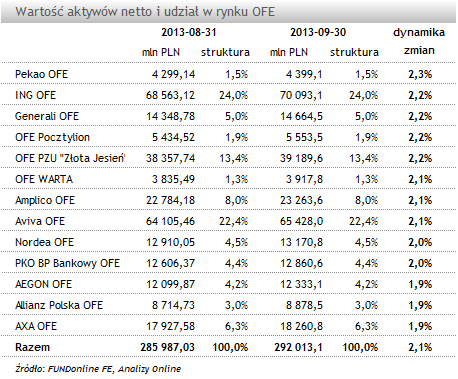 Raport: Aktywa OFE (Wrzesień 2013)
