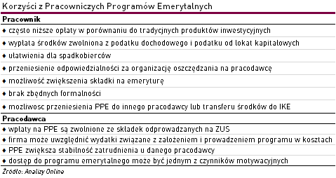 Są tanim i skutecznym sposobem oszczędzania na tzw. „złotą jesień”, bez konieczności ponoszenia dużych obciążeń podatkowych. Pomimo tego, nie zawojowały jeszcze serc i portfeli Polaków. Według danych KNF na koniec 2014 r. w Pracowniczych Programach Emerytalnych (PPE) ulokowano 10,2 mld zł. Z tej formy oszczędzania na emeryturę skorzystało zaledwie 381 tys. osób (wzrost o +1,6% w stosunku do 2013 r.) – co daje niecałe 2,5% wszystkich pracujących.