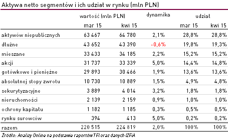 Aktywa funduszy inwestycyjnych (kwiecień 2015)