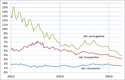 Już teraz zresztą widać, że o ile łagodna polityka EBC (nawet bez QE) nie spowodowała napięć inflacyjnych, to jednocześnie przełożyła się wyraźnie na kondycję rynków finansowych. Chodzi tu nie tylko o akcje, ale także choćby obligacje krajów peryferyjnych strefy euro. Od czasu deklaracji szefa EBC Mario Draghi’ego o tym, że zrobi wszystko co możliwe dla obrony euro (VII 2012) obligacje krajów takich jak Hiszpania, Portugalia czy Włochy przeżywają hossę. Ich rentowności z poziomów kryzysowych szybko podążają w stronę poziomów charakterystycznych dla uznawanych za bezpieczne papierów niemieckich czy francuskich. O ile w latach 2010-2011 obserwowaliśmy silną „dekonwergencję” (rozbieganie się) cen obligacji, to teraz mamy do czynienia z ponowną „konwergencją” w ramach strefy euro. Przykładowo o ile w punkcie kulminacyjnym obaw o strefę euro rentowność hiszpańskich obligacji 10-letnich przekraczała 7,5%, to teraz zbliża się do pułapu 3%.