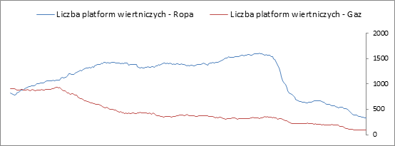 Produkcja ropy naftowej w USA spada. Pomiędzy rokiem 2008 a 2015 mieliśmy do czynienia z bezprecedensowym wzrostem mocy produkcyjnych w USA, spowodowanym zarówno rozwojem technologicznym w zakresie poziomych odwiertów, jak i ze wzrostem liczby platform do wydobywania surowca ze złóż łupkowych. Stany Zjednoczone zmieniły się z największego importera w jednego z największych producentów ropy naftowej. Jednak od szczytów podaży na poziomie 9,3 mln baryłek dziennie, Stany Zjednoczone zeszły obecnie do 8,8 mln baryłek dziennie. Wielu producentów ropy ze złóż łupkowych już zamknęło lub ograniczyło produkcję i jeżeli cena utrzyma się poniżej 60 dolarów za baryłkę, proces ten może nabrać znacznego przyspieszenia. Odwierty łupkowe mają bardzo wysoki współczynnik eksploatacji. Pozyskiwana ilość surowca spada co roku o nawet 45%, tylko z powodu eksploatacji złoża. Właśnie z tego powodu platformy do odwiertów łupkowych są platformami ruchomymi – po kilku latach już nie ma co wydobywać z danego odwiertu.