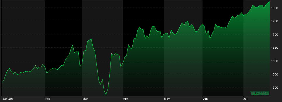 Ceny kruszcu zanotowały delikatną korektę po przekroczeniu bariery 1800 USD za uncję, jednak w ostatnich dniach powróciły na ścieżkę wzrostów. We wtorek rano cena złota oscyluje w okolicach 1820 USD za uncję, czyli blisko poziomów tegorocznych maksimów. Jeśli złoto wybiłoby się ponad rejon 1820-1830 USD za uncję, to najprawdopodobniej czekałaby nas kolejna fala wzrostów i próba dotarcia do maksimum historycznego.