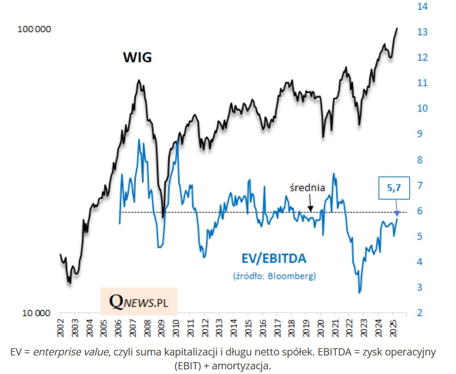 Do wieloletniej średniej zbliżył się natomiast ceniony szczególnie przez inwestorów instytucjonalnych współczynnik EV/EBITDA (wynik EBITDA jest często uznawany za mniej chwiejny niż zysk netto stosowany do wyliczania P/E). Wynikałoby z tego, że polskie akcje są wyceniane na umiarkowanym poziomie.