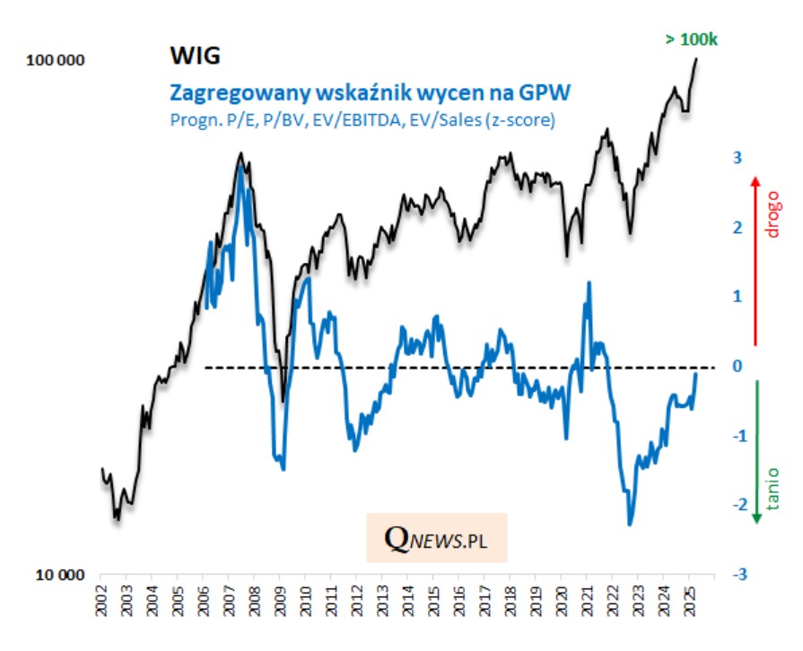 WIG – 100 tysięcy punktów, a wyceny... umiarkowane