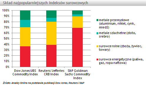 Obecnie mamy do wyboru kilkanaście tego typu funduszy. Przy wyborze konkretnego produktu, najważniejszy jest fakt, czy aktywa lokowane są na rynku surowców, czy też w akcje spółek opierających działalność na surowcach. Różnice w zachowaiu obu grup funduszy potrafią być znaczne. Podpowiedzią jakiego typu jest produkt może być jego benchmark. W przypadku produktów stricte surowcowych jest nim zazwyczaj jeden z 3 najpopularniejszych indeksów: Thomson Reuters/Jefferies CRB Index, S&P Goldman Sachs Commodity Index lub Dow Jones UBS Commodity Index (lub ich odmiana). Znajomość ich składu może nam podpowiedzieć jaki udział mają poszczególne surowce w portfelu funduszu. Podczas gdy w S&P GSCI największy udział (aż 60-70%) mają surowce energetyczne, w pozostałych dwóch wagi poszczególnych sektorów są już bardziej rozłożone.
