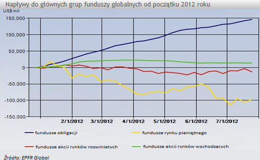 Od początku 2012 roku, saldo nabyć i odkupień w globalnych funduszach dłużnych wyniosło +223 mld USD, podczas gdy dla światowych funduszy akcji było to -31 mld USD. Dla porównania, w analogicznym okresie poprzedniego roku, było to odpowiednio +115 mld i -4 mld USD.