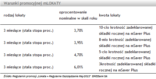 Od 20 maja mBank oferuje swoim klientom połączenie programu regularnego oszczędzania z lokatą w nowej promocji „Lokata + Regularne Oszczędzanie Maj-2013”.