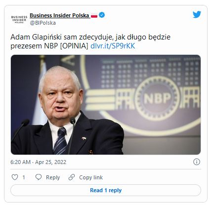 Jak jednak zwraca uwagę Bartek Godusławski w swojej opinii na Business Insider Polska, obecny prezes, choć teoretycznie musi zostać zatwierdzony przez Sejm, to jednak dopóki będzie miał poparcie prezydenta, i tak może wciąż kierować bankiem. Na stanowisku szefa banku centralnego nie może być bowiem wakatu.