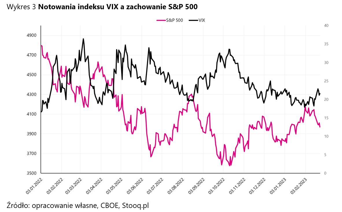 VIX nazywany jest „wskaźnikiem strachu”, bo ma negatywne powiązanie z zachowaniem indeksów giełdowych. Historia podpowiada, że dynamiczne spadki S&P500 związane są ze wzrostem wskaźnika VIX. Z takimi sytuacjami mieliśmy do czynienia choćby podczas pandemii koronawirusa czy wybuchu wojny w Ukrainie.