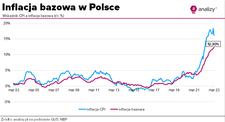 Na podstawie danych GUS o inflacji CPI ekonomiści szacowali, że inflacja bazowa, a więc z wyłączeniem cen energii i żywności, wzrosła w marcu w ujęciu rocznym powyżej 12 proc. I się nie pomylili. Dane NBP wskazują, że w marcu wskaźnik bazowy wyniósł 12,3 proc. r/r.