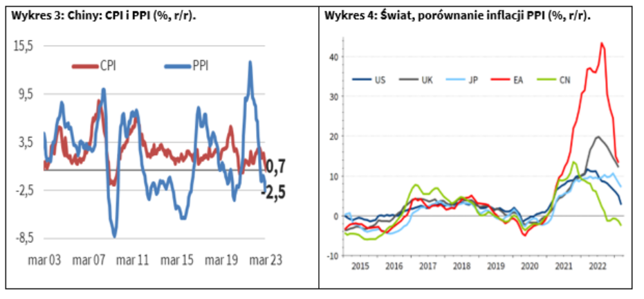 Powrotowi Chin „ze zwolnienia covidowego” na razie towarzyszy kompletny brak presji cenowej w tamtej gospodarce. W marcu inflacja CPI r./r. spadła w Chinach z 1,0% do 0,7% (m.in. dzięki 1,4-proc. spadkowi cen żywności względem lutego). W Państwie Środka systematycznie pogłębia się też deflacja producencka: z 1,4% r./r. w lutym do 2,5% w marcu. Historyczne korelacje wskazują, że kształtowanie się cen w Chinach przekłada się z czasem na ceny u jej partnerów handlowych. Skorzystać na tym powinna także Polska, dla której Chiny są drugim, po Niemczech, dostawcą towarów.
