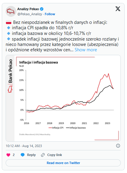 – Sierpień w dalszym ciągu zapowiada się na ostrzu noża (bardzo blisko 10% r/r) – konkludują analitycy Pekao.
