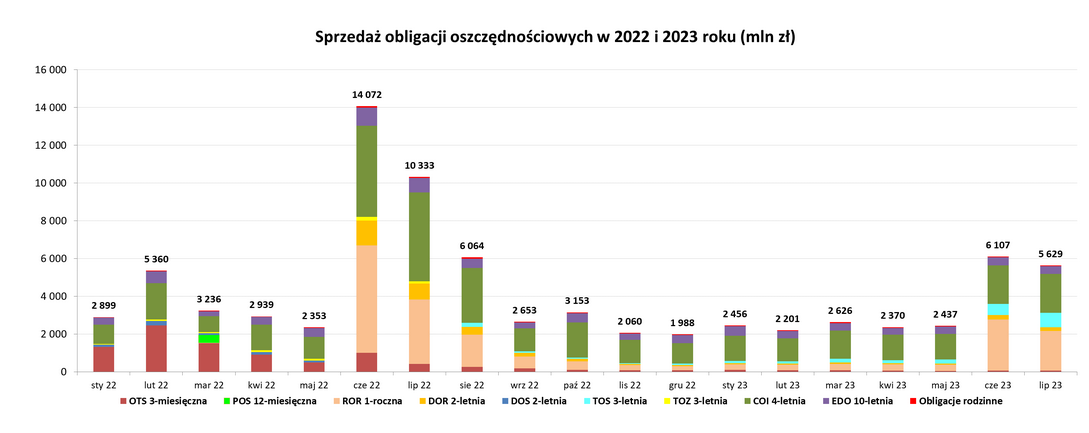 W lipcu Ministerstwo Finansów sprzedało obligacje oszczędnościowe o łącznej wartości 5,629 mld zł.