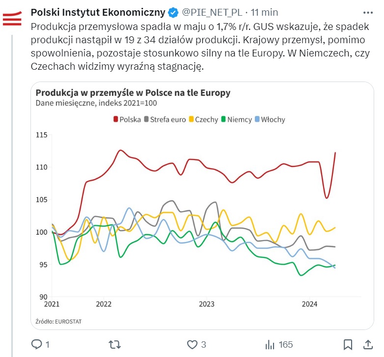 Krajowy przemysł, pomimo spowolnienia, pozostaje jednak stosunkowo silny na tle Europy. W Niemczech, czy Czechach widzimy wyraźną stagnację.
