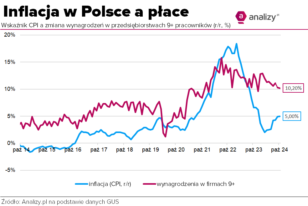To wciąż wyższa dynamika niż w przypadku inflacji, jednak różnica między wzrostem płac a wzrostem cen wciąż spada.