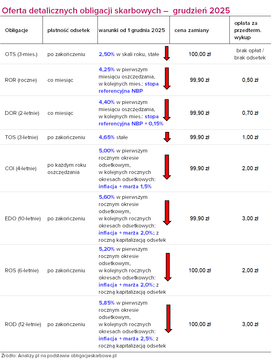 – W grudniu ponownie dostosowujemy oprocentowanie obligacji oszczędnościowych do warunków rynkowych. Jednocześnie, w przypadku instrumentów o oprocentowaniu zmiennym, utrzymujemy marże w kolejnych okresach odsetkowych na niezmienionym poziomie – komentuje Jurand Drop, podsekretarz stanu w Ministerstwie Finansów.