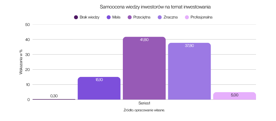 20,41% inwestorów ocenia swoją wiedzę jako przeciętną, 37% jako znaczną, a tylko co dwudziesty jako profesjonalną.