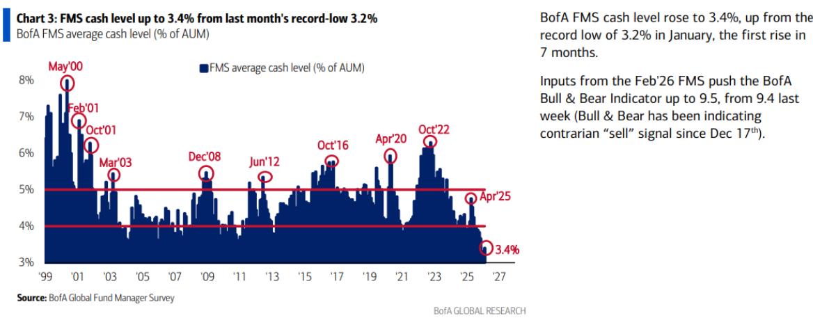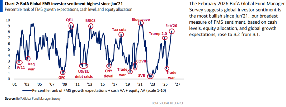 Ankieta BofA (luty 2026): Euforia na rynkach trwa, ale rosną też obawy o AI