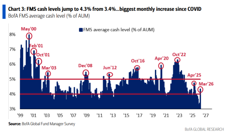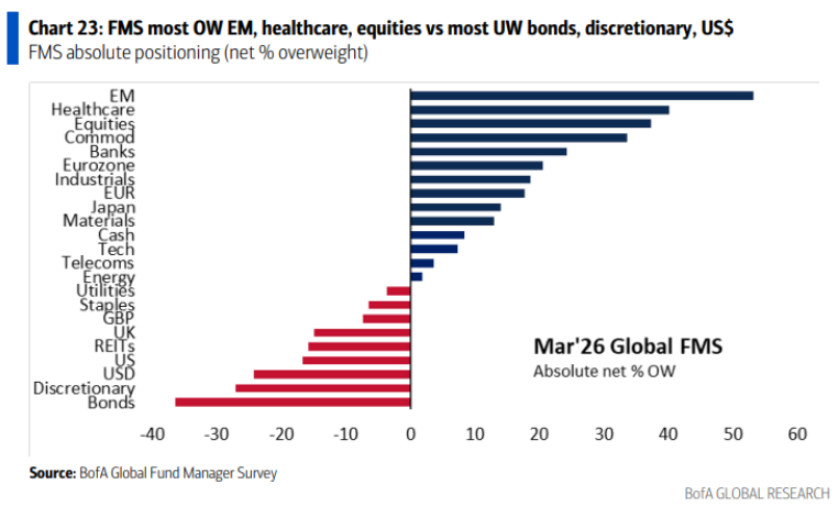 Ankieta BofA (marzec 2026): Wybiórcza ostrożność: gotówka w górę, ale EM wciąż w cenie