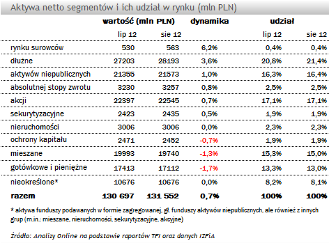 Raport: Aktywa funduszy inwestycyjnych (Sierpień 2012)