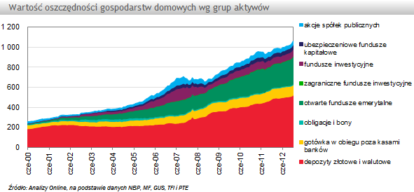Po wyłączeniu OFE, w których zgromadzone aktywa nie mogą być wykorzystane w sposób natychmiastowy, wartość oszczędności wyniosła 789,7 mld zł i była wyższa o +3,7% względem stanu na koniec września 2012. W skali całego roku wartość oszczędności Polaków wzrosła o 101,5 mld zł, czyli o jedną dziesiątą (+10,6%).