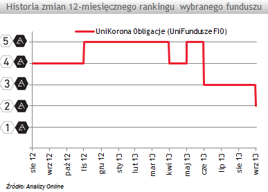 W odwrotnej sytuacji jest natomiast AXA Obligacji, fundusz, którego nota 36-miesięczna poprawiła się do 5a, dzięki czemu trafił do elitarnego grona rozwiązań z najwyższą notą w obu horyzontach.