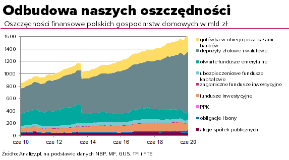 Pierwszy kwartał tego roku przyniósł pierwszy od 2014 roku spadek oszczędności polskich gospodarstw domowych, wywołany głównie mocną (koronawirusową) przeceną na rynkach kapitałowych. Wraz z poprawą sentymentu i odbijającymi rynkami, odbudowały się także oszczędności Polaków. Choć wzrosły wszystkie kategorie lokat, to za ich wzrostem stoją głównie depozyty i gotówka.