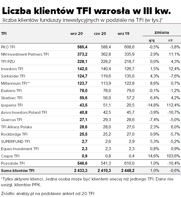 Liczba klientów TFI wzrosła w III kw. ‘20