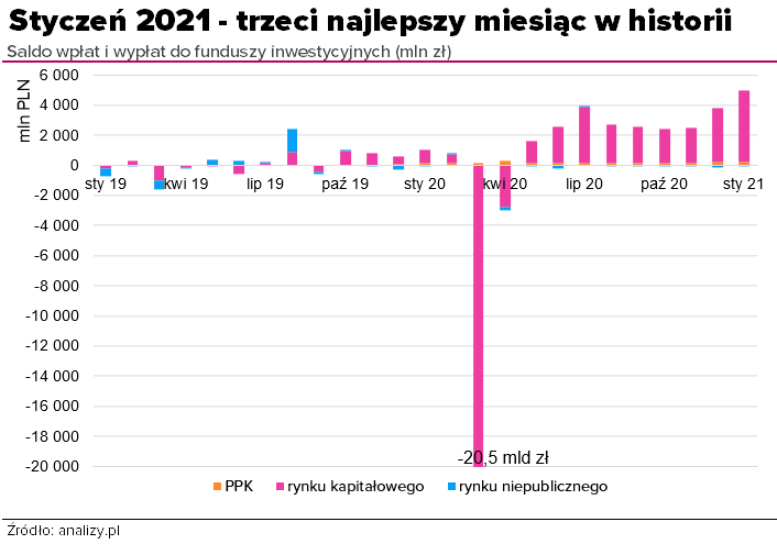 Saldo wpłat i wypłat do funduszy (styczeń 2021) – trzeci najlepszy miesiąc w historii