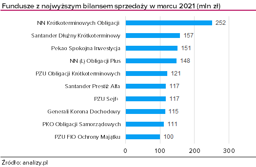 Marzec był jedenastym z kolei miesiącem z przewagą wpłat nad wypłatami do funduszy inwestycyjnych. Bilans sprzedaży był niższy niż w poprzednich 2 miesiącach i wyniósł nieco ponad 3,0 mld zł.