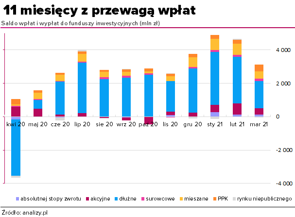 Saldo wpłat i wypłat do funduszy (marzec 2021)