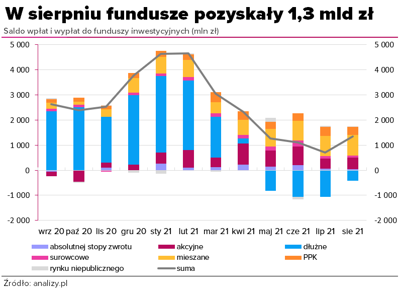 Saldo wpłat i wypłat do funduszy (sierpień 2021) – ponad 1,3 mld zł